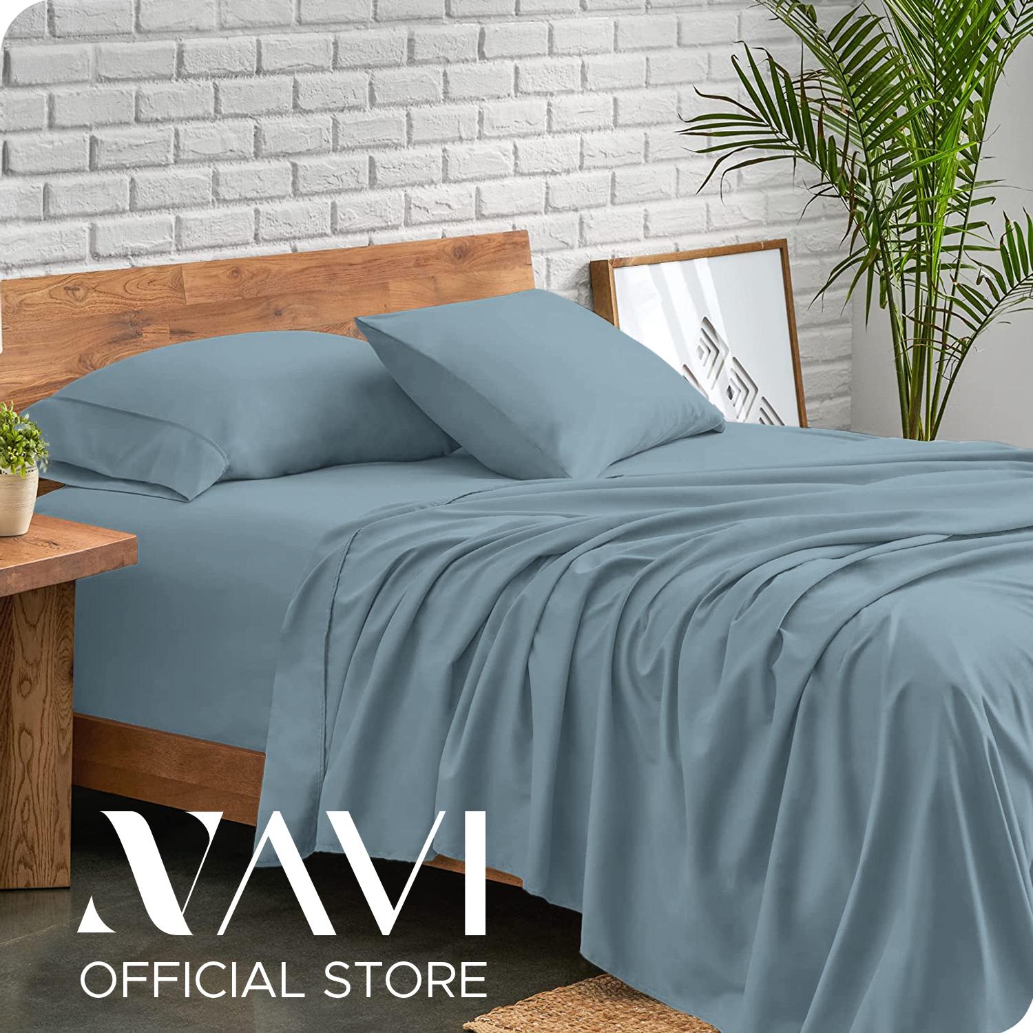 NAVI - PLAIN Bedding Set | Pastel Shades | 1x Fitted Bedsheet with 2x Pillowcase | Fully Garterized Hotel Quality